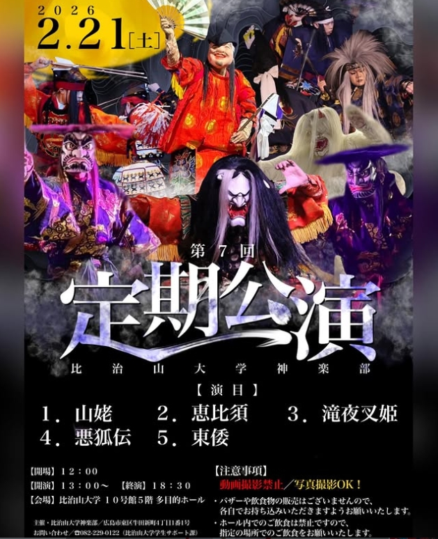 治山大学神楽部の定期公演をご案内します。